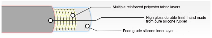 - Material: Inner Layer Food Grade Silicone + Reinforced Layer of Polyester Fabric / Nomex / Aramid Fabric / Glass Fabric